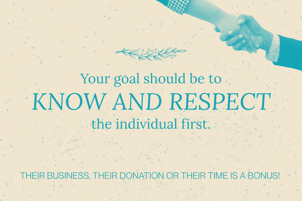 But your goal should be to know and respect the individual first. Their business, their donation or their time is a bonus!