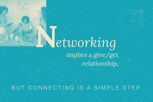 Whereas networking implies a give/get relationship, connecting is a simple step.
